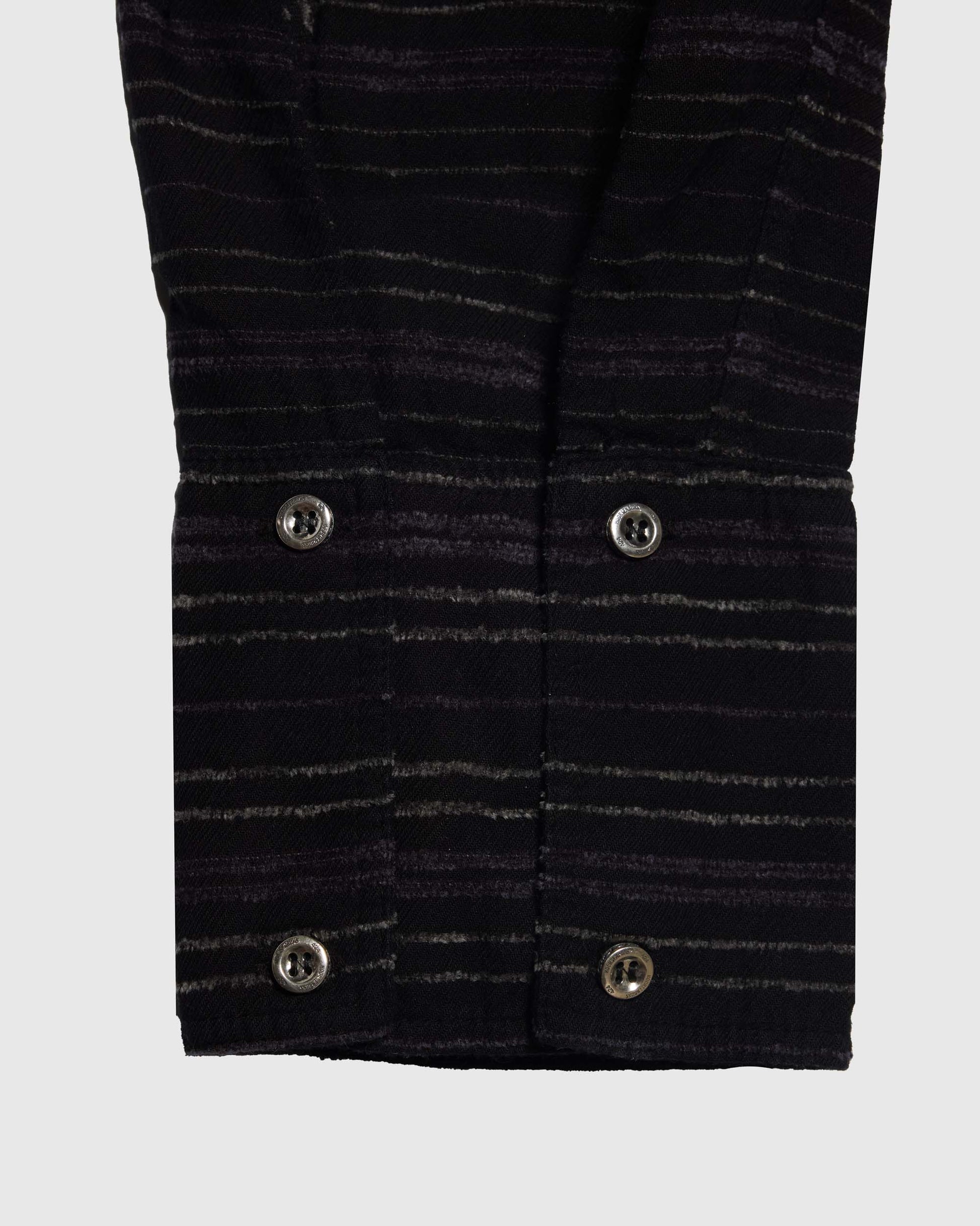 • Black flannel with subtle stripe pattern